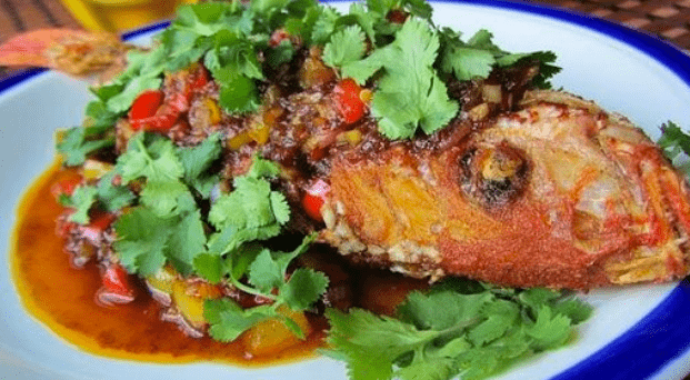 0605 Pla Kao Rad PhrikGaeng (ปลาเก๋าราดพริกแกง) Stir Fried Grouper With Chili Sauce