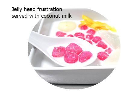Jelly head frustration serve with coconut milk (ทับทิมกรอบน้ำกะทิ)